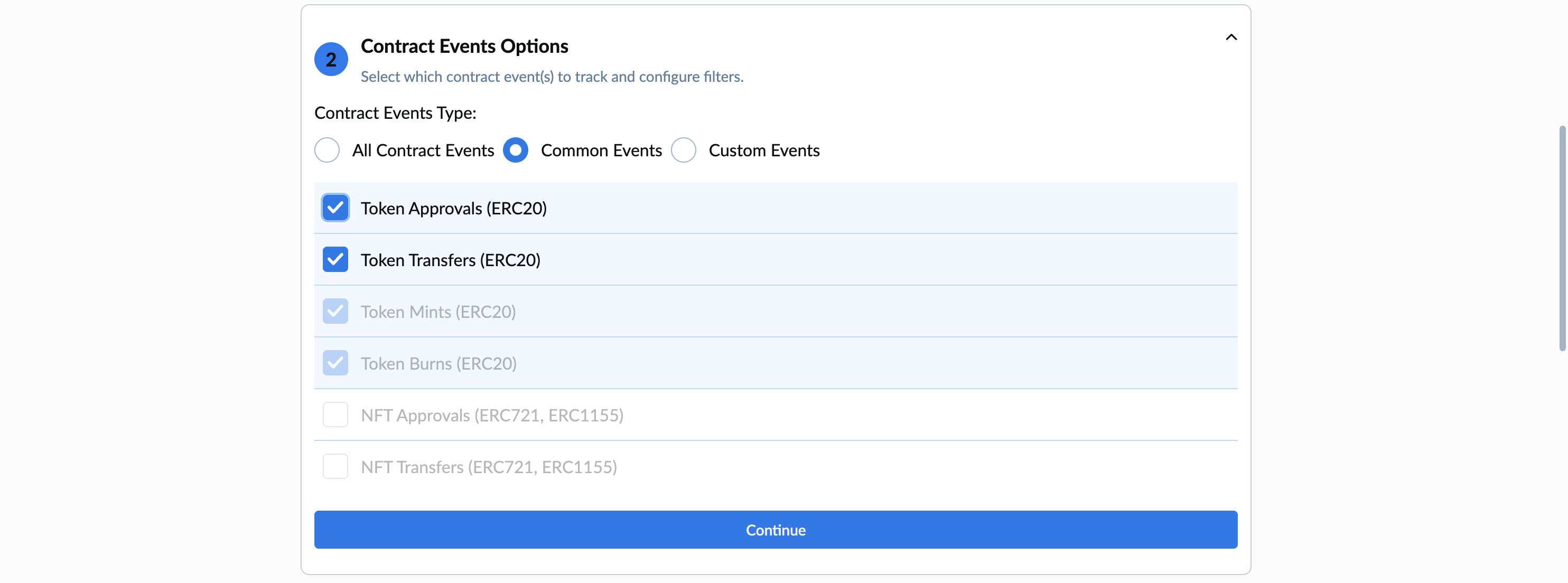 Custom Event- Customisable options for events and filters, allowing precise notifications.Wallet Activity- Track native transactions and smart contract interactions (transfers, approvals).Contract Activity- Monitor smart contract events (logs).